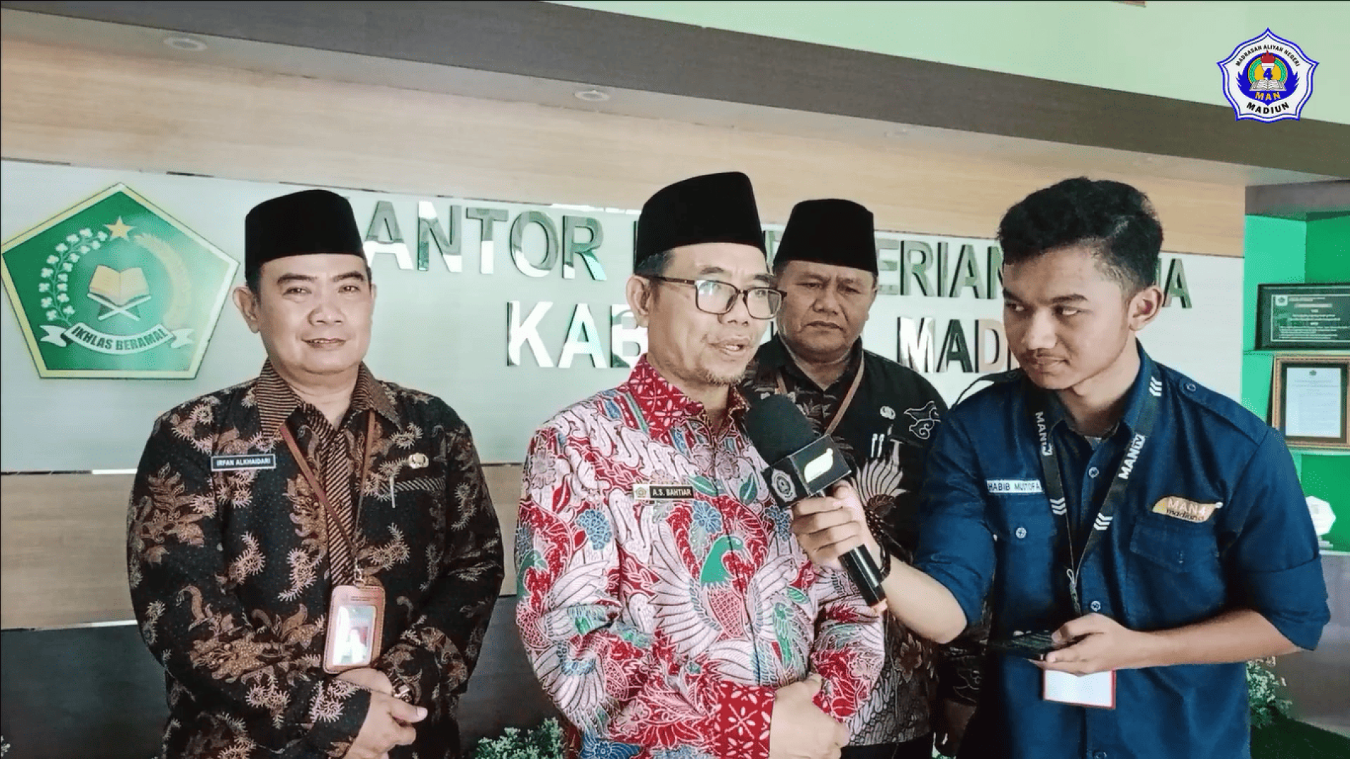 HARI SANTRI NASIONAL KE-X, 22 OKTOBER 2024, JURNALIS MAN 4 MADIUNTV DIMAS KHEYSA WAWANCARA DENGAN PENGURUS CABANG NU KABUPATEN MADIUN DENGAN BAHASA ARAB DAN INGGRIS DI PENDOPO RONGGO DJUMENO KABUPATEN MADIUN