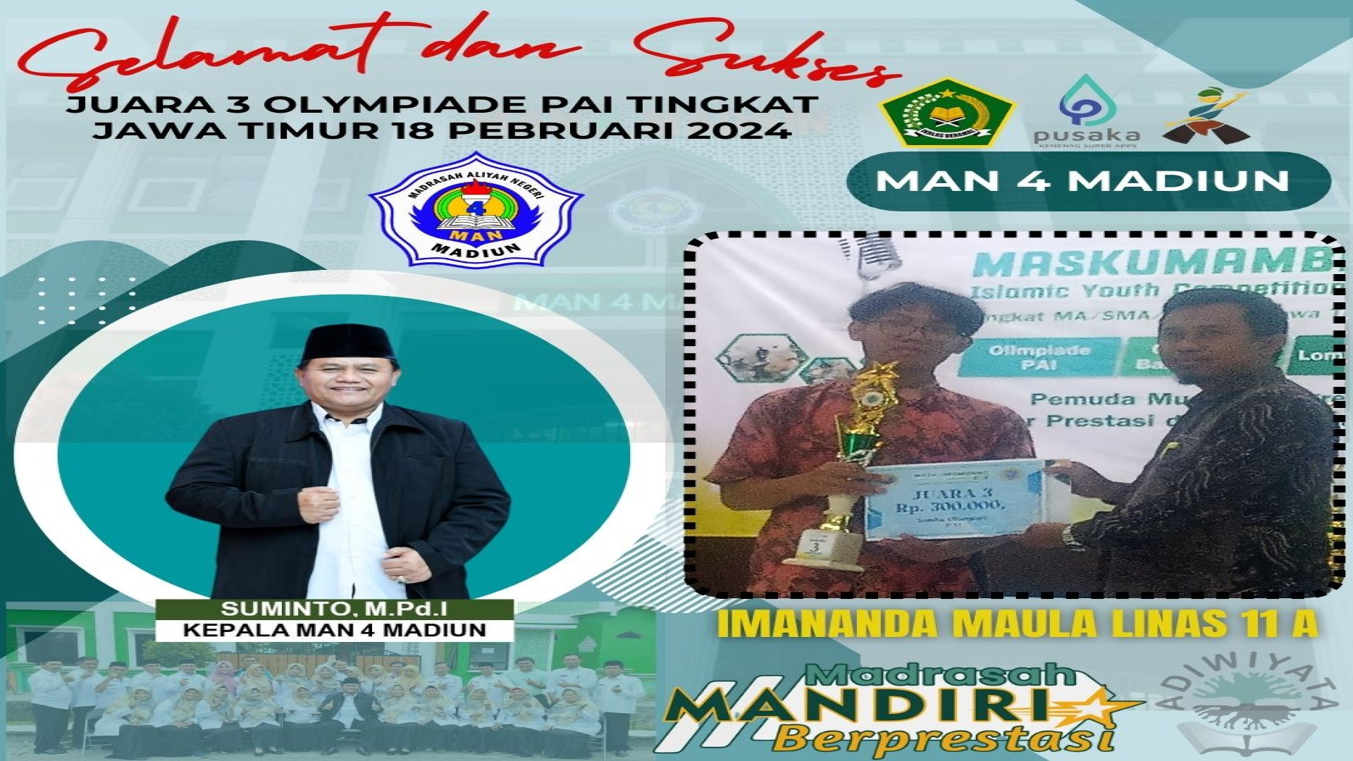 SISWA MAN 4 MADIUN KEMBALI BERPRESTASI PADA AJANG OLYMPIADE PAI JAWA TIMUR TAHUN 2024